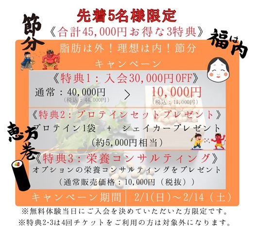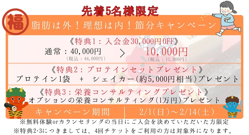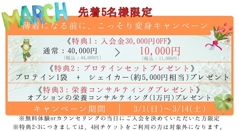 トレーニングの内容や、トレーナーとの相性など、お客様にご納得した上でご入会いただくために、他のパーソナルジムでは、通常5,000円~11,000円で行われている体験トレーニングを常時無料にてご体験いただけます。